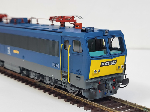 0km-s modell. Egy hiba: a "B" oldalon lemaradt a MÁV felírat. Digitálisan előkészített modell ( Plux 22-s ). Háromfényű menetfény és kétfényű zárfény. Gyári doboz,leírás,kiegészítők mellékelve.