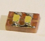 A kisebb méretű SMD LED kivezetéseire zománcozott rézhuzalt forrasztva, az közvetlenül is felragasztható a nyitott peronú kocsik lámpáinak helyére, vagy a zárlámpába, belülről:
