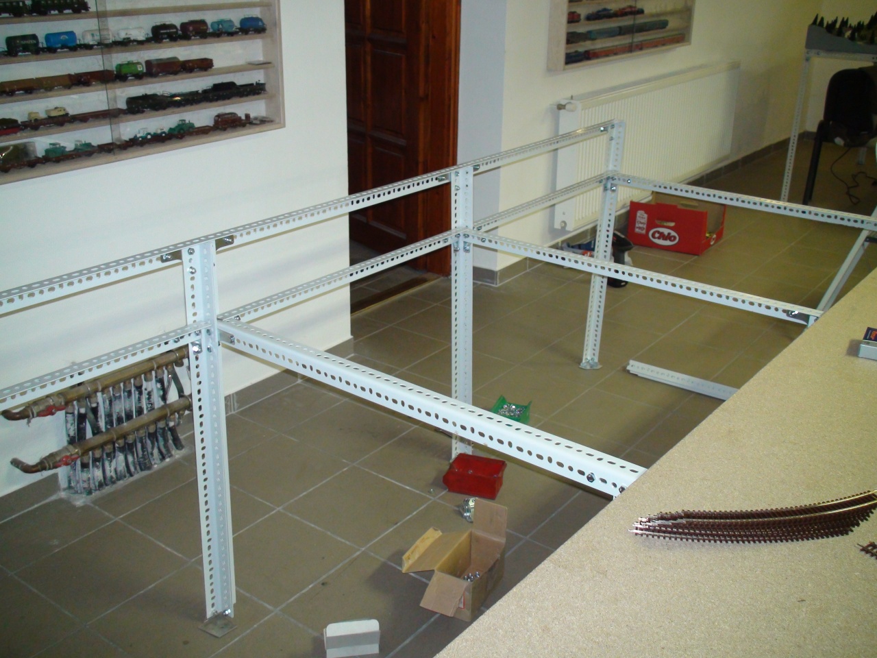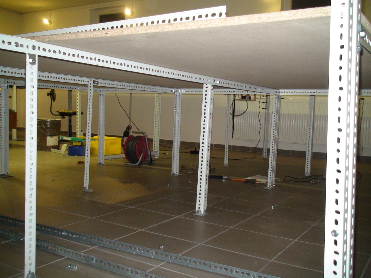 Mi 90 cm magasra csináltuk és először levágtuk az anyagot, összecsavaroztuk, rátettük a lapot, freizerrel hozzáerősitettük, meghúztuk fixre a rendszert.