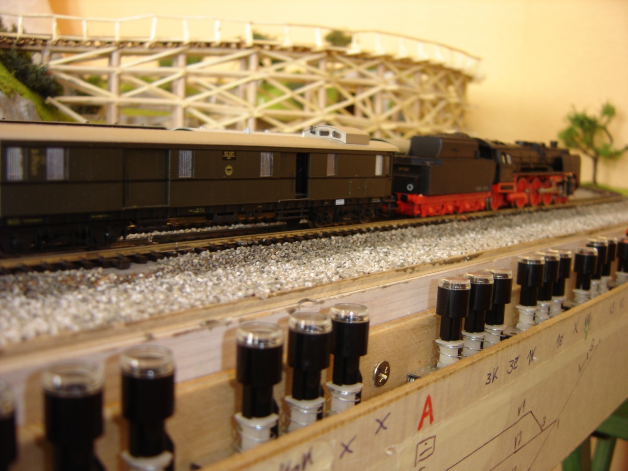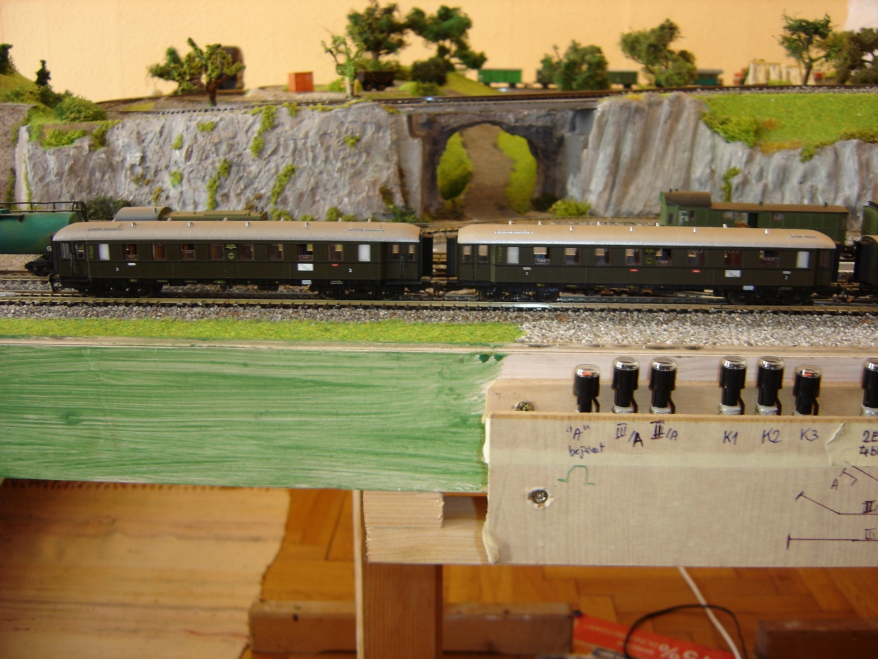 A régi asztalomon volt egy ív ahol mindig szétakadtak a kocsik. (régi BTTB kapcsolók) Nem értettem miért teszi aztán amikor nagyon alaposan kilestem kiderült, hogy nem volt teljesen vízszintes a pálya hanem kicsit lejtett + az ív. A kocsik saját súlyoknál fogva összenyomták a kuplungokat aztán az ív miatt szépen el is engedték egymást. Nagyon bosszantóak ezek a pici eltérésből adódó hibák...