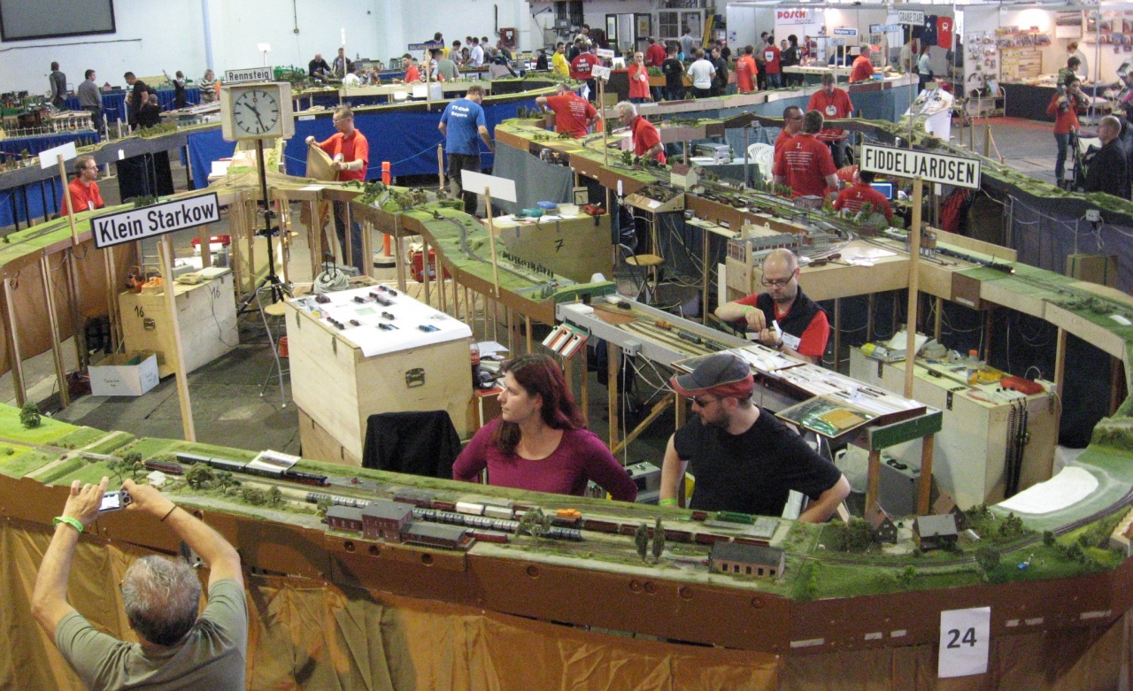 A "csak az érintett vágány legyen táp alatt" témához: a "Brechen-féle" tárolónál ez azért lényeges, mert a nem aktív vágányok szabad végén semmilyen biztosítás nincs, így ha áram alatt lennének, fennáll a veszélye a mozdonyok véletlen megindulásának, és ezáltal egy meredek parabola mentén történő (egyébként nemkívánatos) röppályára állásának. Fiddeljardsenben ugye ez nem téma, ott maximum a zabolátlan mozdony beleesik a "tolópadmedencébe", bár inkább csak döccen egy nagyot, nem nevezném igazi esésnek. |