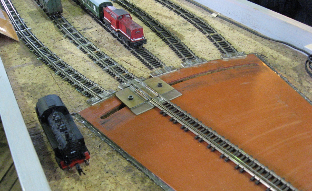 Ahogy Gashpy is írta az egyik egy fiókszerűen, oldal irányban tologatható, kb. 0,5x2,0 m-es felület. A vágányok táplálása a bejárati végen, a pozicionálást segítő réz pálcákon keresztül történik, aminek következtében csak az épen a kijárati vágány vonalába eső tárolóvágány kap táplálást.