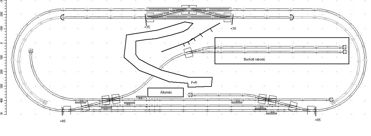 Azért pont erre az állomásra esett a választásom, mert öt fővágányával (II-VI. vágányok), négy csonka-, egy mellék- (I.) és egy átrakó (+1 megkerülő) vágányával már elég komoly forgalmat lehet rajta játszani (igaz, a valóságban a szénbányászat 1970. április 1-jén megszűnt). Az egyszerűség kedvéért Tillig kitérőket alkalmaztam, emiatt a váltókörzetek enyhén torzítottak, pl. 2 db ellenkező görbületű kitérő helyett egyszerű EW2 kitérőket terveztem be (ezáltal a torzulás is kompenzálva lett valamelyest). Bázishossznak a III. vágány 355 méteres használható hosszát vettem alapul, a torzítás miatt kb. 2900 mm a hasznos vágányhossz TT-ben. A bejárati szakaszokkal együtt kb. 6 méter hosszú a végeredmény, ekkora állomás méretünkben talán csak a németeknek van (Finkenheerd).