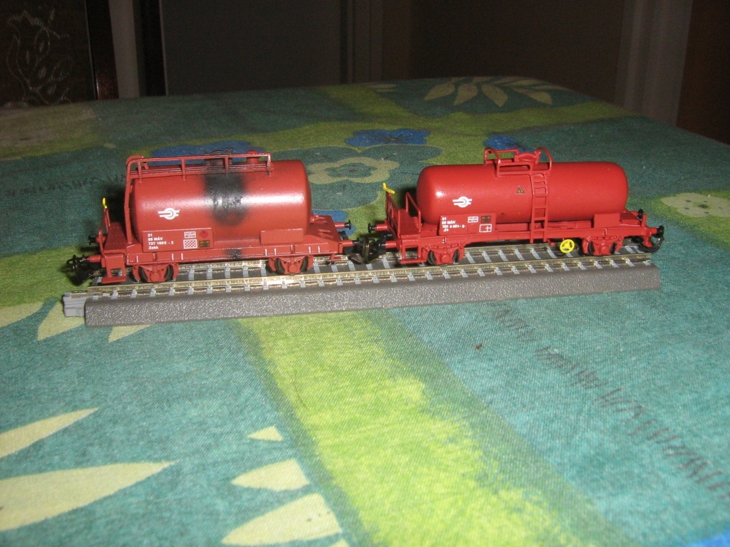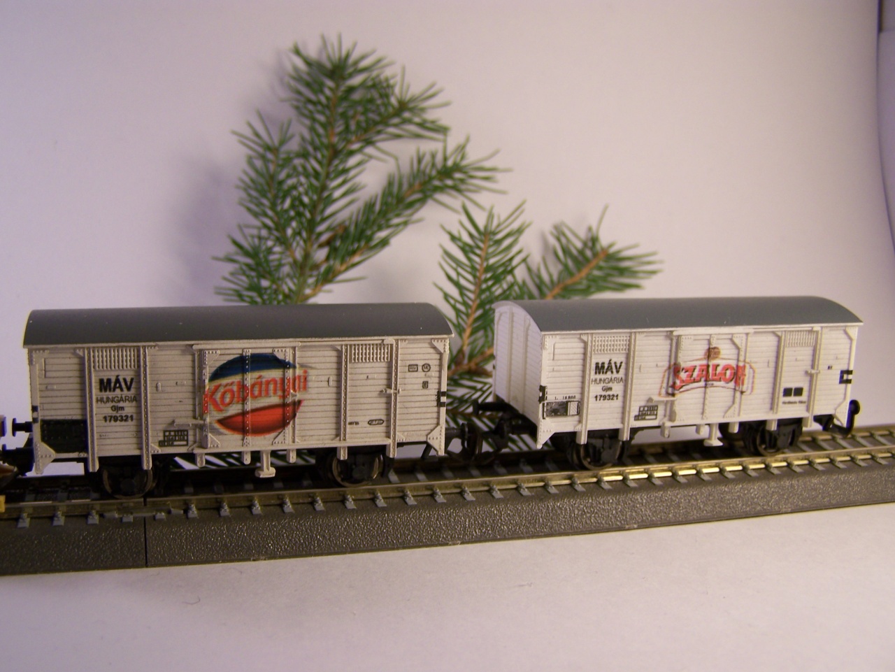 Nem átfestettek, nem is mertem volna felrakni akkor mind minimum átépített, de pl. a középső Zs vagon létra alvázas nem sok gyári alkatrész van rajtuk. Egy kép az átfestettről és a Zs-ről. |