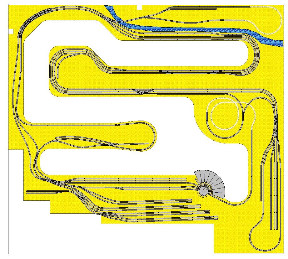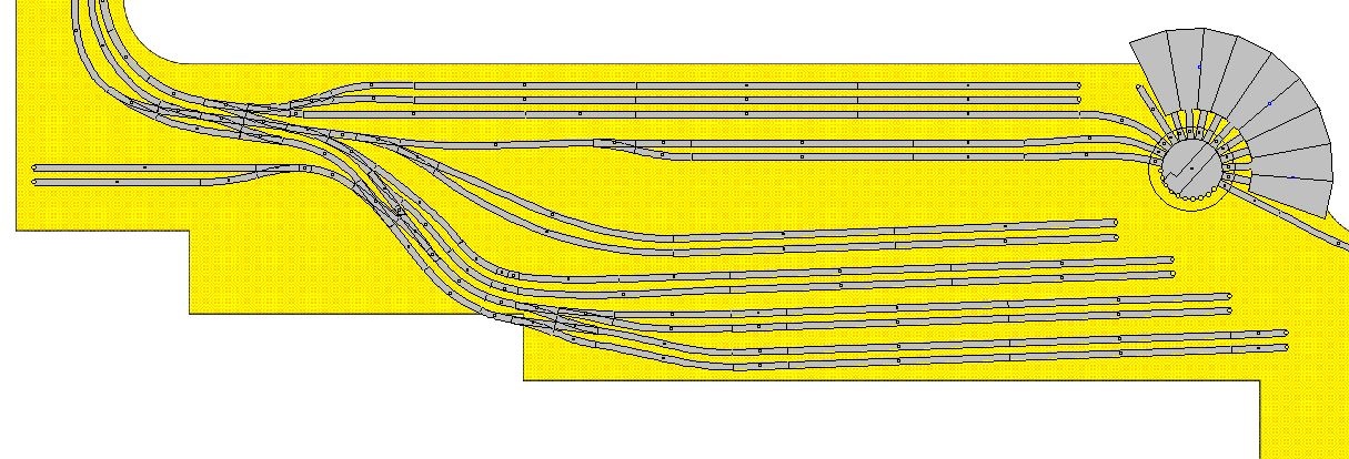 A csatolt tervrajzból ezek hiányoznak. Tökig érő vágányhálózat mindenhol, de téma, ötlet sehol, és a valódi vasúti közlekedéshez sem sok köze van.