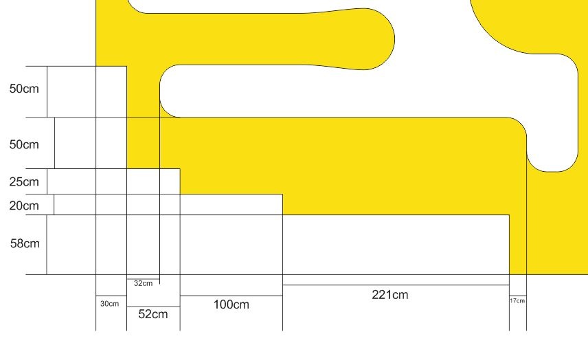 Ahogy írtam is, az asztal széle még változni fog, ez a sárga alap csak egy méretpontos háttérkép, hogy tudjam, mennyi hellyel tudok gazdálkodni... aztán ha megvan a végleges verzió, vagy rakok be 7,5°-os kanyarokat, hogy kicsit megtörjem az egyeneseket mindenhol, vagy az asztal szélén változtatok.