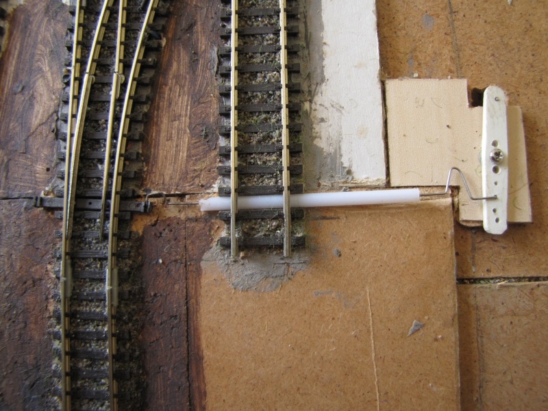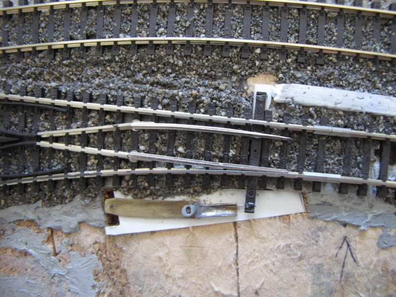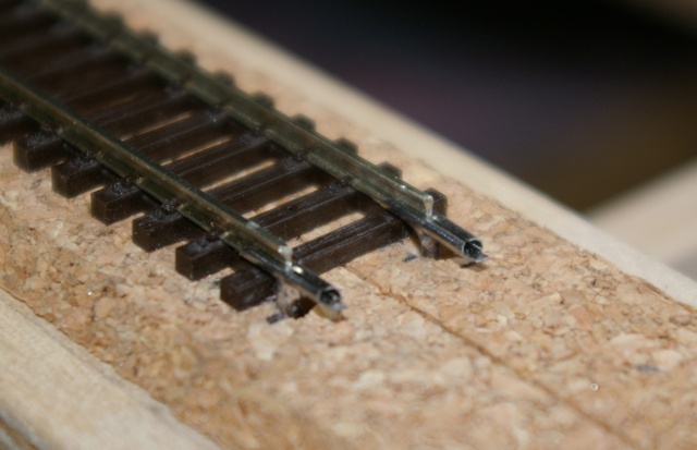 A töltéses sín sem olyan rossz, ráadásul nem kell a töltés kialakításával bajlódni  Ráadásul az állítóművek elrejtése is megoldott (csak lyukat kell vágni a váltó alá az alaplapba, hogy gond esetén is hozzáférhető lehessen.)