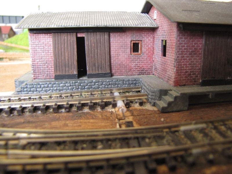 Most próbaképp áttettem a mozdonytároló csonkát a másik kettő alá - végül is lehet hogy így marad ahogy BR95 javasolta. Alulra betettem egy iparvágányt - az, hogy tényleg oda fér-e majd elválik (nagyon közel van az asztal sarkához, bár ott nincs ív ami miatt belógnának a kocsik de mégis..)