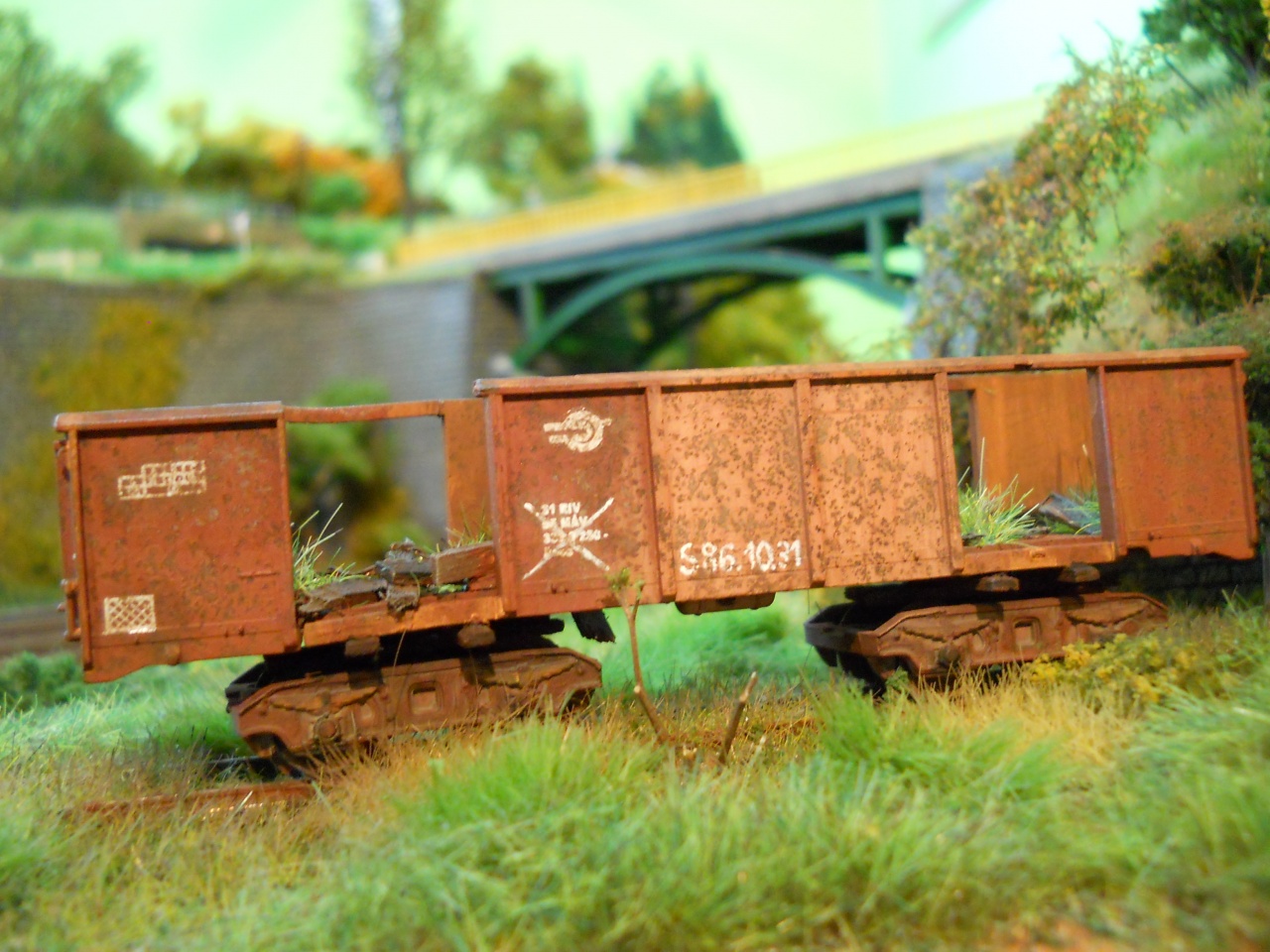 A nagyvasúton is csorog a rozsdás lé mindenfelé. Ahol besötétedik a kő, oda kell kenni némi világosat vízzsák gyanánt, meg pár csomó füvet, és kész.  |