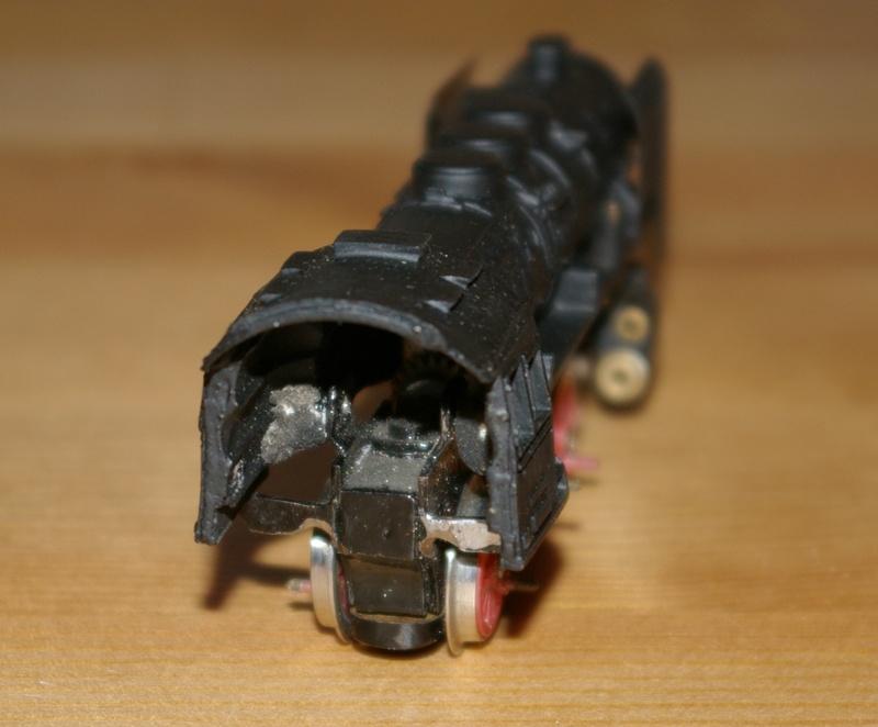 Összehozom, csak cserélni kell a forgóvázakban a két tengelyt, meg a motort, meg megcsinálni a kupplungok helyét, meg pótolni őket, meg cserélni a világítást kapcsoló diódákat, meg pótolni egy izzót, meg cserélni két tapadógyűrűt, meg egyenként lepucolni a mechanika összes elemét, meg cserélni a motorból kivezető hajtótengelyt, meg visszagörbítgetni az áramvezetést biztosító fém lemezeket, meg lefújni feketére az üzemanyagtankot imitáló fém súlyt, meg újra kenni a mechanikát, meg polírozni a kerekeket, meg pótolni pár csavart. "Egy-kettőre" meg is van... |