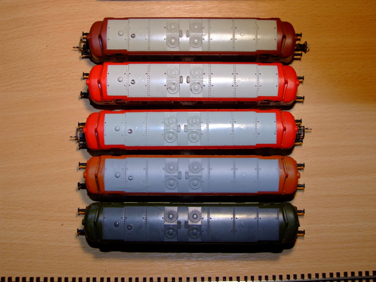 Ha a megfelelő szín-korszak-vasúttársaság kombóra vágysz, akkor egy átfestés lehet a leghatásosabb megoldás. Amiben - úgy látom - szépen haladsz. Előtte persze érdemes átnézni a maszkot, ami rendszerint reped, törik. Feljavítás, összecsiszolás után fújható és örök életű. |