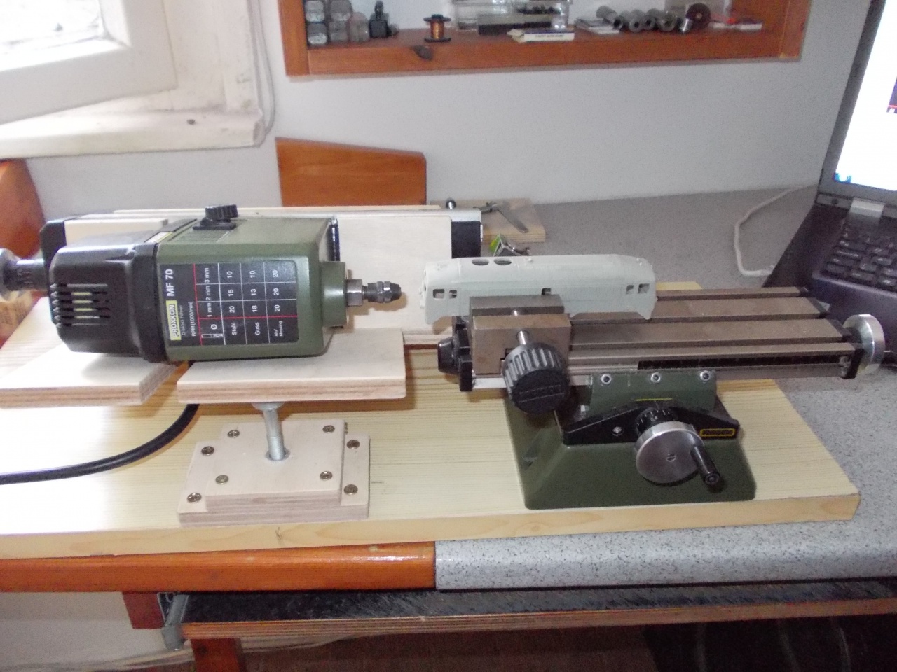 De délután már áthidaltam ezt a problémát, mert nem lesz szükségem ilyen kézi gépre, mivel szerencsére a ez a Proxxon a talpazatról leválasztható. Készítettem is hozzá egy befogót, aminek állítható a magassága, így már könnyen megoldható a mozdonyok orrán lévő kapaszkodók furatainak a kifúrása. |