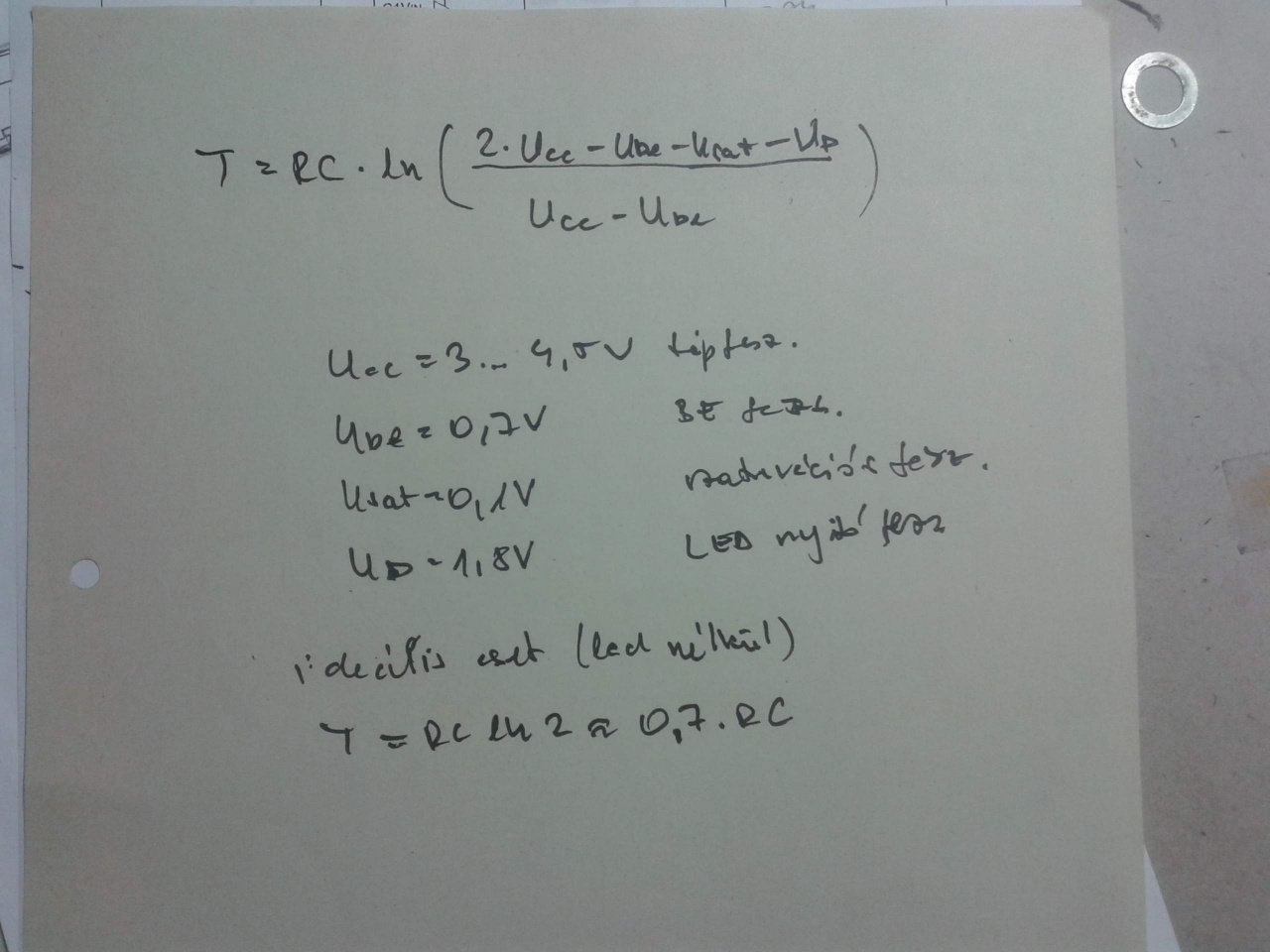 Alább látható az astabil multivibrátorok időzítésének képlete.