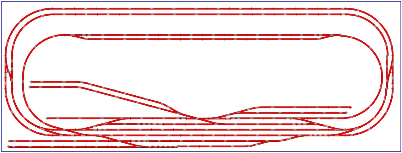 Viszont kérdezem, ha van egy icipici hely még szélességben, akkor esetleg a jobb felső csonka vágányok elhagyásával nem lehetne - bal alsó csonkából - egy mellékvonalat ívben felvezetni egy 1 - 2 vágányos kisállomáshoz, ami a pálya tetején helyezkedik el emelt szinten?