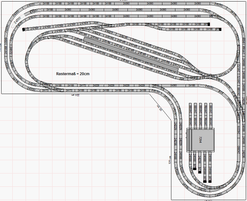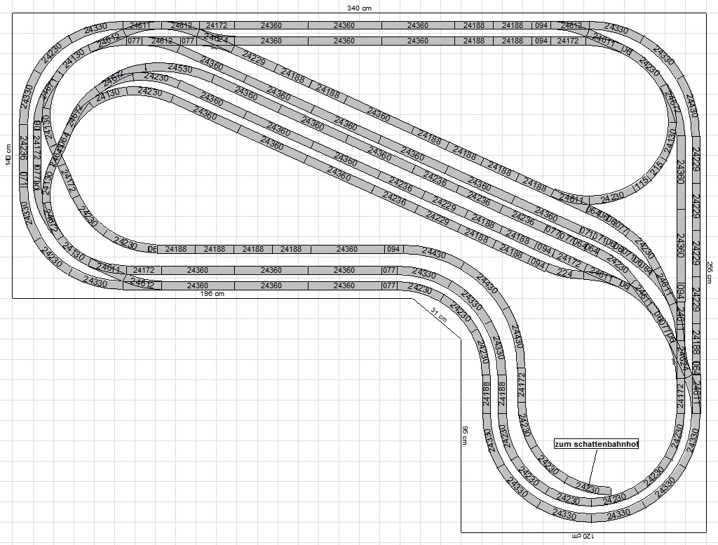 - a jobb alsó forduló után a visszafordulóból pl. ideálisan le lehet vezetni a pályát egy tárolószintre, ahol önmagába fordulhatna vissza, persze tárolóvágányokkal (vagy "*"-gal jelölt szakaszba).