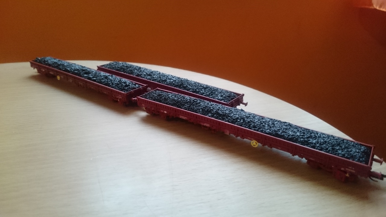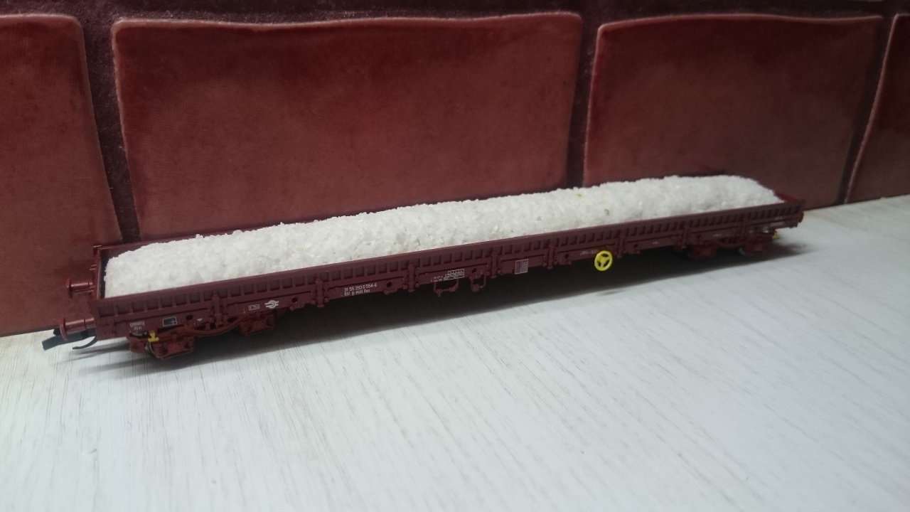 A Res kocsikban, aminek a rakományát feketére festetted, abban... izé azon még nem láttam. Viszont zúzott követ a pályaépítéshez, meg sódert már láttam így szállítani. |