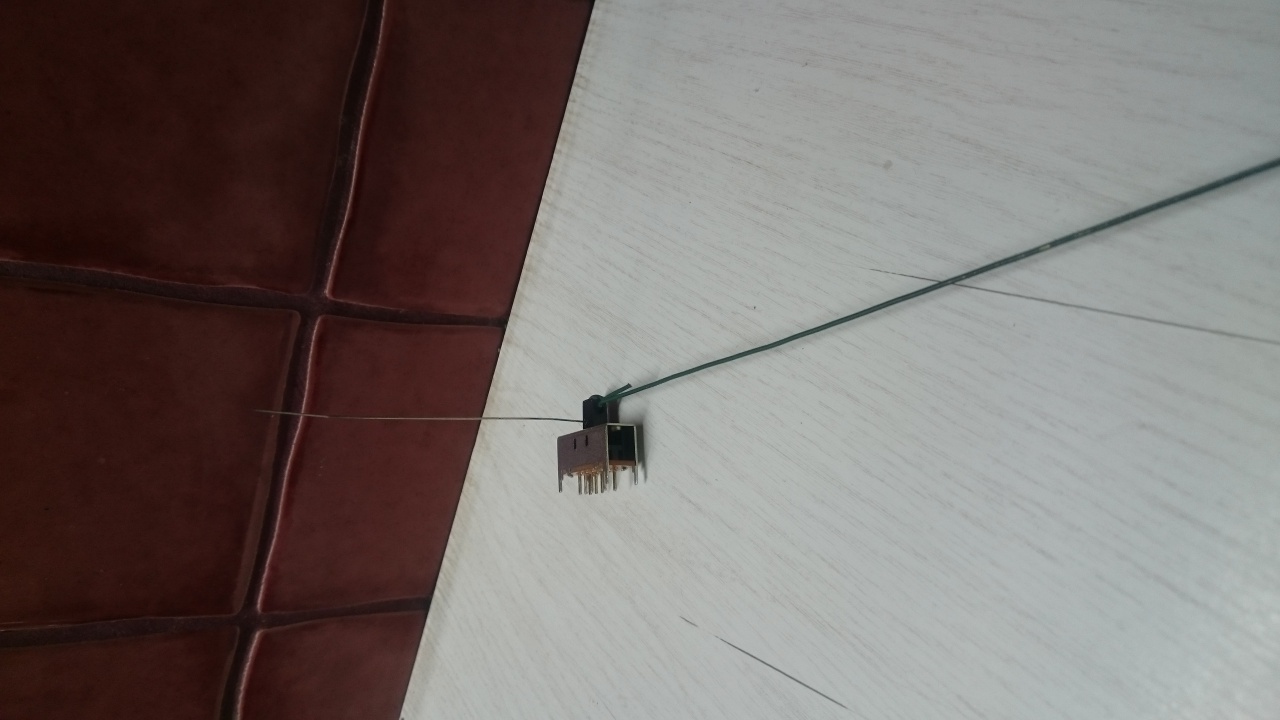 Most összedobtam valamit csak úgy ez a drót elég jónak tűnik amit a Viessmann sorompó mellé adtak bár nem tudom ez jó e váltót állítani. Jól felmelegítettem és beledugtam a kapcsolóba ki se jön onnan bár ez elég barbár munka majd finomított rajta  A mozgató huzal azt meg a virágboltosok használják elég kemény,de kell valami hüvely neki mert kicsit hajlik.