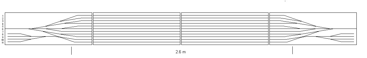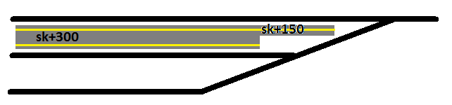 Olyan létezik, hogy egy peron ami széles, sk+300as és két vágány között van, annak a vége ahol már szűkül a váltókörzet miatt, az már sk+150 és csak az egyik vágány felől lehet róla leszállni? Valahol úgy mint a képen.