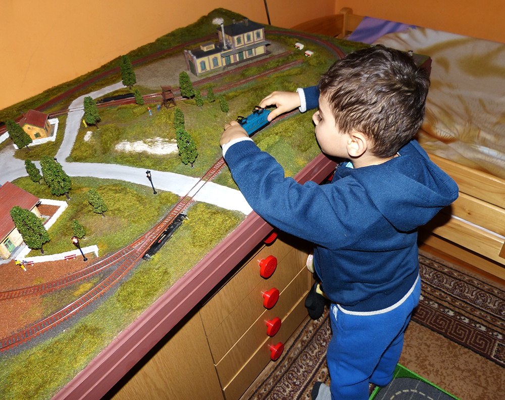 Tavaly itt a fórumon én is feltettem ugyan ezt a kérdést. Az ismeretségi körömben van egy nehéz helyzetű család és a kisfiuk imádja a vasutat. Gondoltam összerakok egy amolyan játszó asztal félét. A felkérésemre csak ketten reagáltak. Az egyik társunk nyomott áron adott sínt, trafót és egy startos mozdonyt. Egyedül Hubert Feritől érkezett néhány ajándék vagon. A 118-ast az édesanyja fizette és az Ő kérésére vettem. Az asztal többi elemét a kivitelező maTTato műhely finanszírozta. A kész mű februárban került átadásra és nem múlik el nap aktív forgalom nélkül. Remélem a fiúnál megmarad a lendület és talán néhány év múlva a klub átlag életkorát javítja.