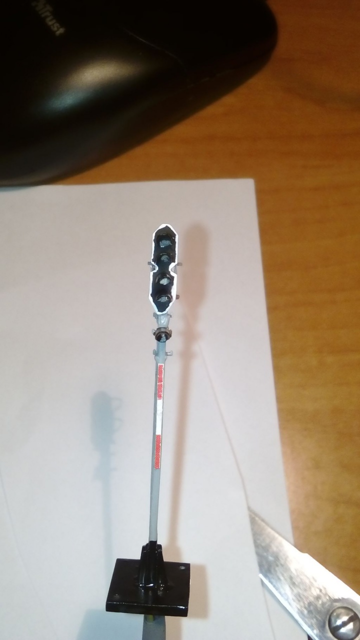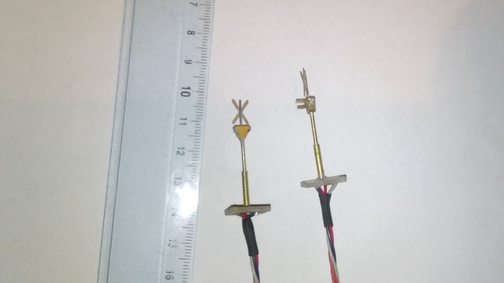 Elkészűlt a fénysorompó. Egy Balatonon lévőt mértem le mely alapján elkészítettem. Az oszlop volt a legrosszabb. a valós méretre vaó csökkentés esetében a vékonyabbik oszlop 0,7 mm-nek kellett volna lennie, mig az alsó 2 mm.