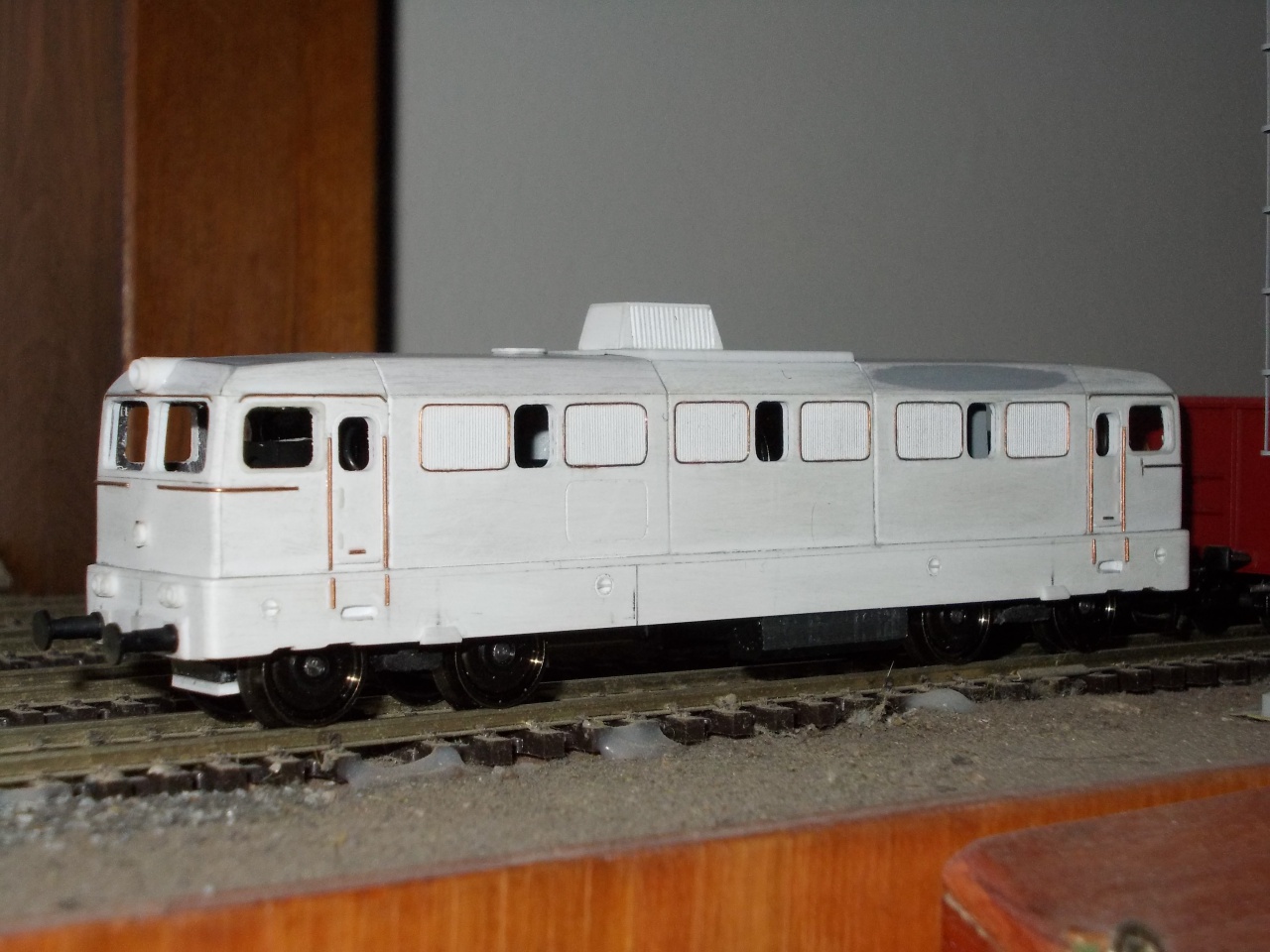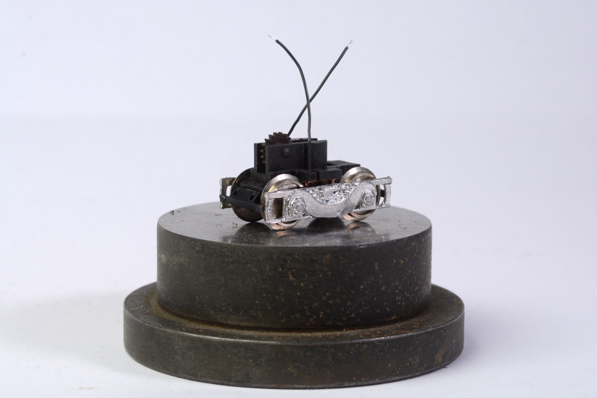 Ha már szóba került a V43-as, akkor megmutatnám a mostanában összeállt új hajtás egyik elemét, a Tillig alapokra épített Szili forgóvázat. Itt még fehérfém próbamaszkkal.