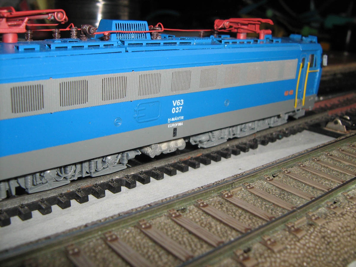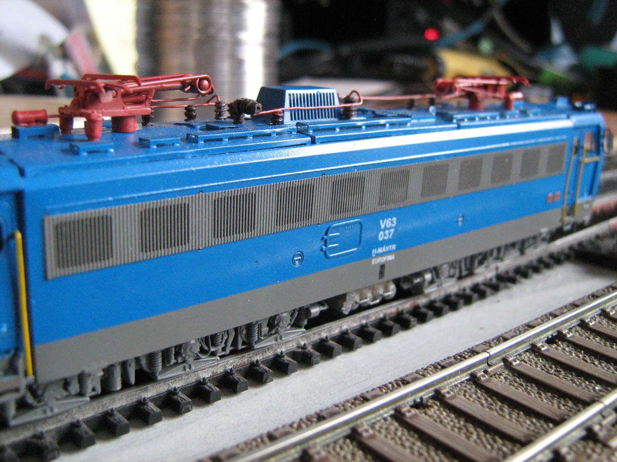 Hangot nem javaslom, mert alapvető hozzányúlás nélkül nem nagyon lehet hangszórót beerőltetni a modellbe. Egy új réz alváz ára meg horror lenne (lásd a honlapomon mihez tartás végett az OFF Klein modellbahn ÖBB 2143-hoz készült példányt). |
