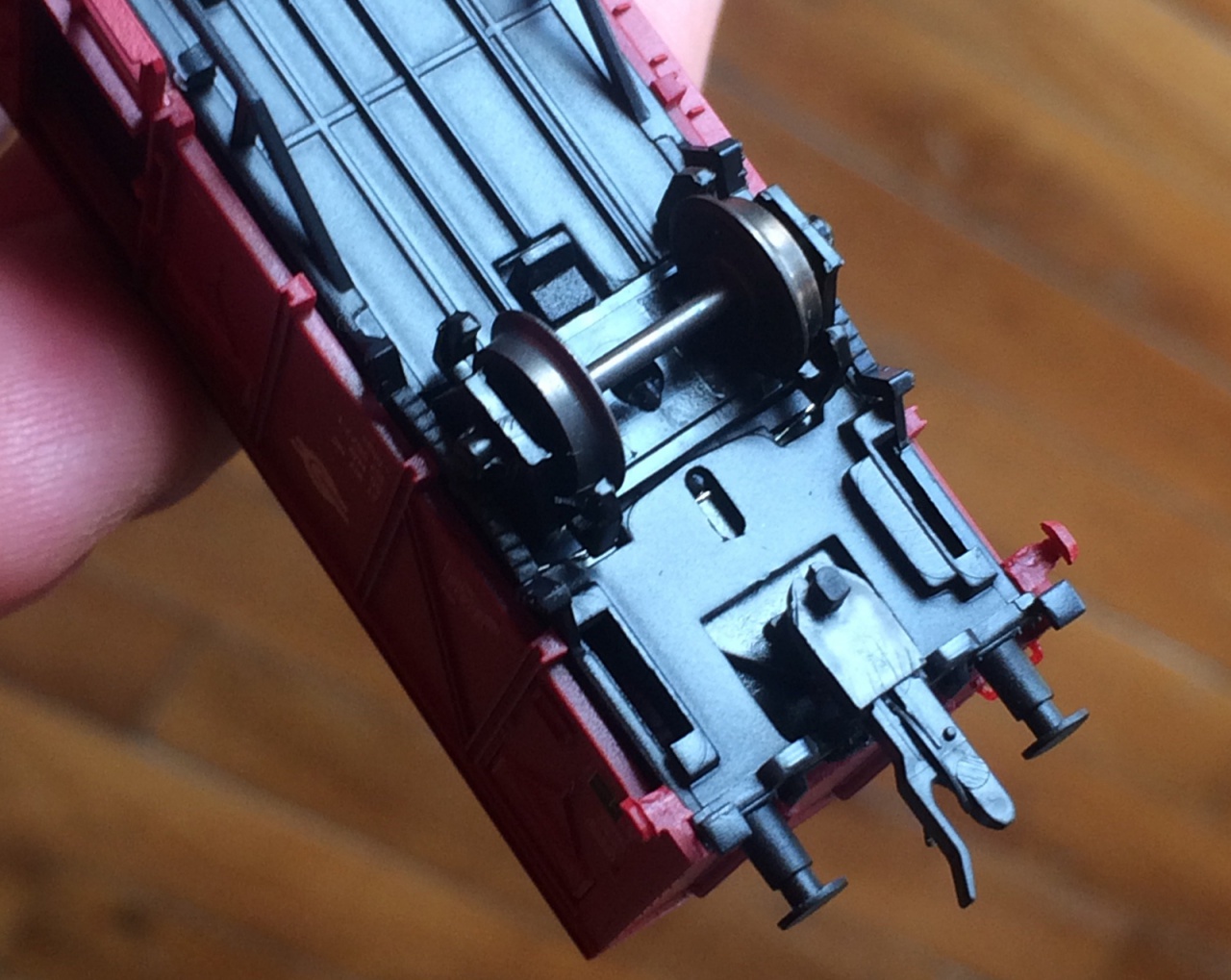 (Az OFF méretű ROCO Donnerbüchsen személykocsik is ilyen forgóvázakon vannak. Nincs is baj velük, pedig a régóta épülgető "Nosztalgia terepasztalon" körbe kergettem őket a régi PIKO kalapsíneken, és nem is siklottak sehol.)