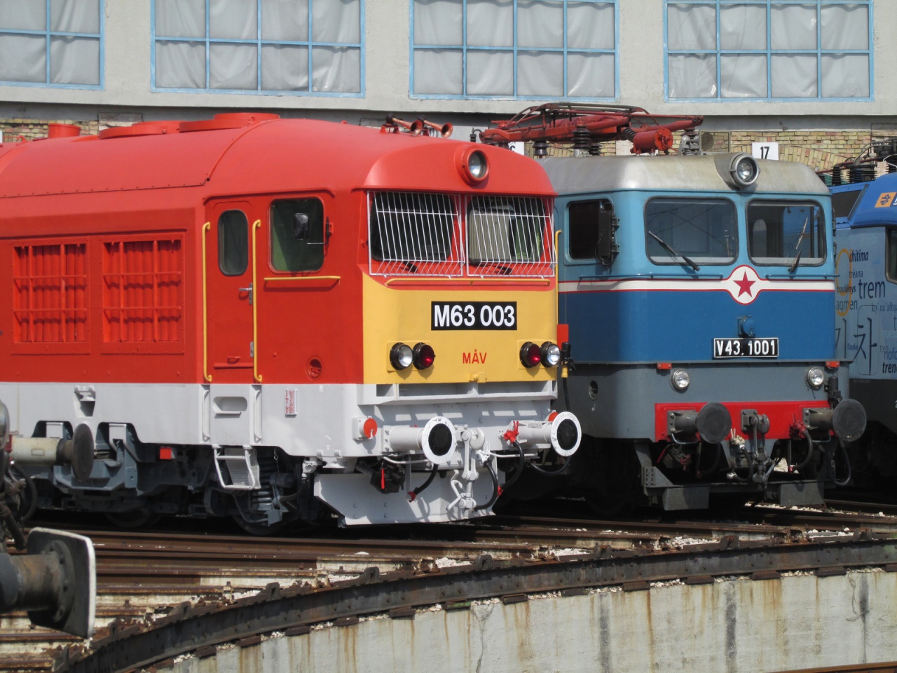 (Valamikor, egykor, régen, mikor még Bagdadban a piactéren... Szóval régen, valaki/valakik, aki/akik a magyar mozdonyok színtervét csinálta/csinálták, még járhatott/járhattak olyan órára az egyetem, amin esztétikát tanítottak. És ő/ők tanulták is ezt a tárgyat. Mire gondolok? Pl. az M44 eredeti, sötétzöld festésére, az M61, és M62 első kinézetére, az első V43-kra, az első M41 mozdonyokra, a világoszöld, csíkos, igazi M40-re. Utoljára a V63 első két példányán volt látható, hogy a forma, és színtervezője járt az emlegetett iskolába. Utána erre a tudásra, műveltségre már nem volt szüksége a "fejlett szocializmusnak", randák is lettek az egyébként jó formájú (kivéve M63, az a legjobb, recept nélkül kapható hánytató szer) mozdonyaink. Az M61-t például teljesen kiveszi a formájából, és elkeni a szimpla, vagyis inkább primitív, egyszínű festése. De ez az én ízlésem...) |