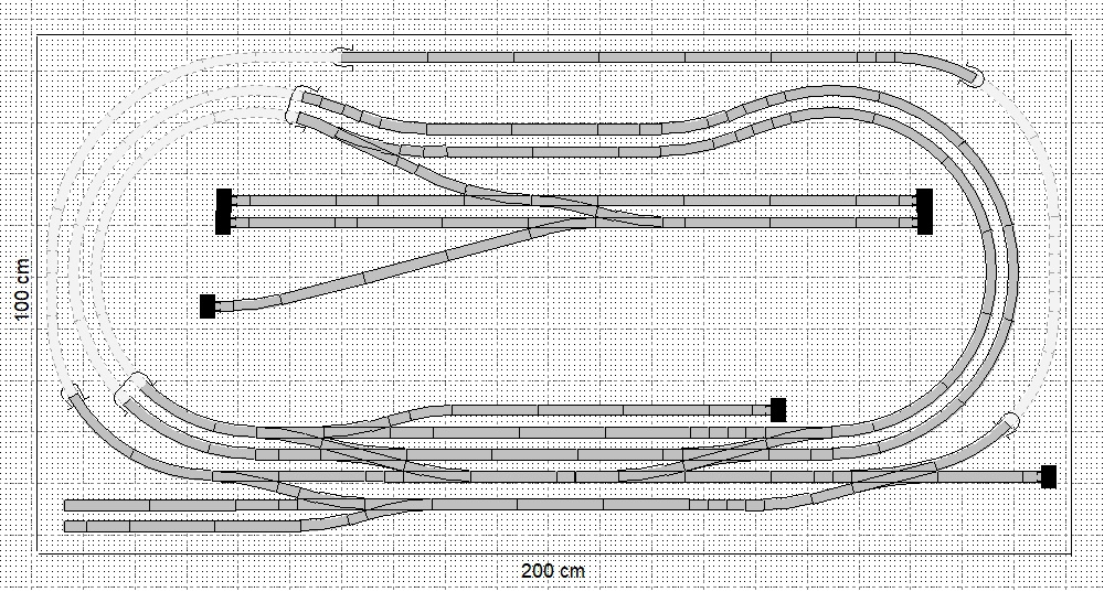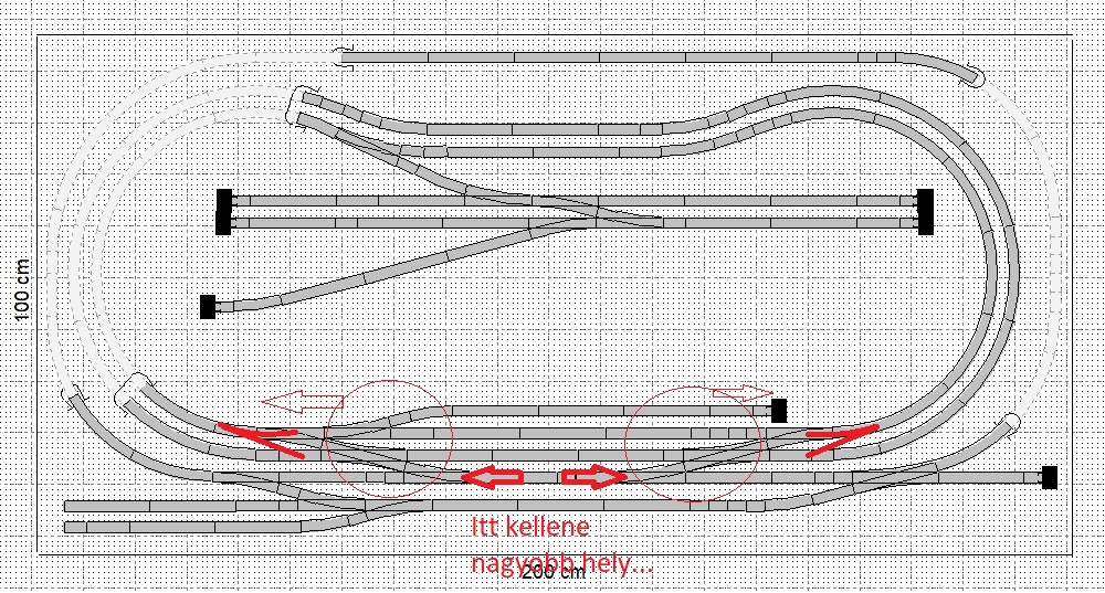 Minden intelmetek ellenére megpróbáloztam újrarajzolni a tervet spirállal és úgy tűnik a mutatvány egészen jól sikerült. A boldogság egészen egy napig tartott, mert rájöttem, hogy az egyik mozdonyunk nem fordul el 310mm rádiusz alatt. Hirtelen felindulásból átrajzoltam a tervet 310mm-es ívekkel a 267mm-esek helyett és nem meglepő módon az asztal mérete is szépen megnőtt. Ez persze helyhiány miatt nem fér be a lakásba, így maradt a totális átgondolás és újratervezés. Ebben nagy segítség volt, hogy időközben szereztem (vásároltam) néhány TT pályatervet és az egyik módosítása után született egy talán egészen jól használható. Igaz, hogy csak egy szintes, de van 3 független kör, amin a gyerek boldogan körözhet a 3 mozdonyunkkal és még szerelvényeket is lehet rajta pakolgatni. Kérlek nézzetek rá és véleményezzétek, hogy szerintetek rendben van-e a pálya vonalvezetése. Köszi előre is! |