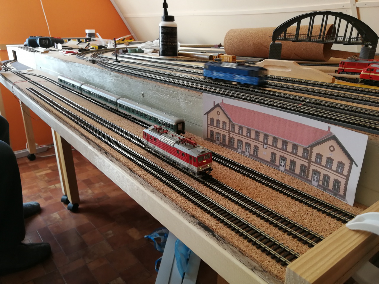 Ha mégis lenne egy kis plusz hely (előre is), akkor lehet, hogy levinném a pályát az állomástól szintben elválasztott nyíltvonali szakaszra vagy kisállomásra.