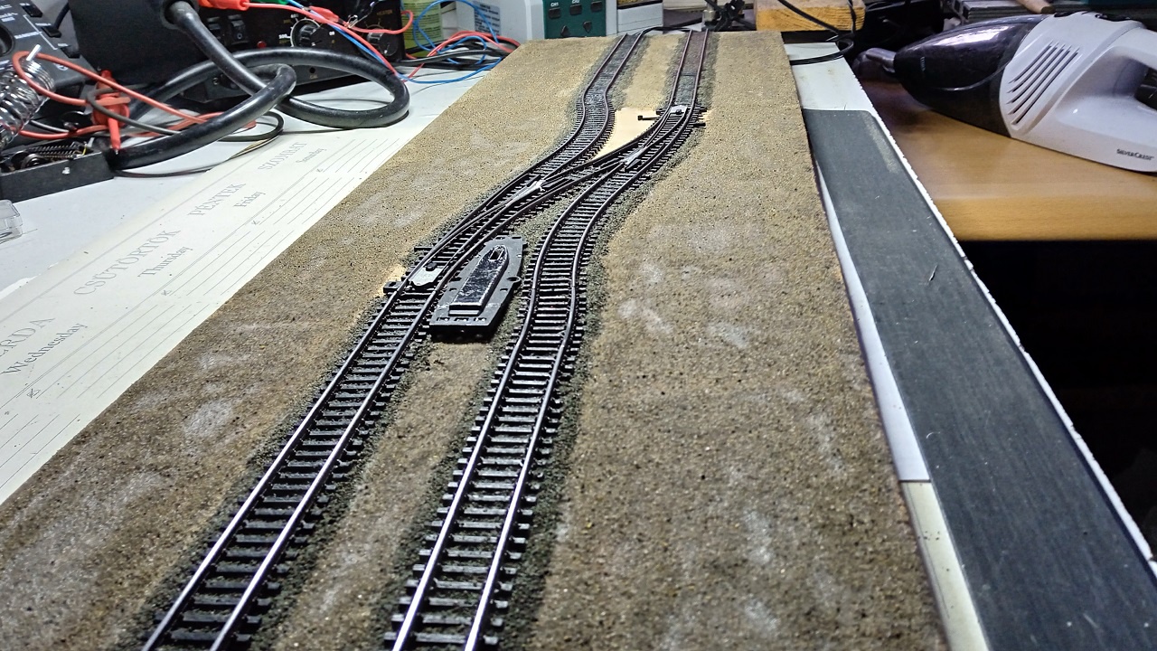 Ez egy teszt pálya, ha ezen végigmegy a modell, akkor nincs baja. Ami ihlette: sok régi mozdony érkezik javításra azzal, hogy váltókon siklik. Most éppen egy Zeuke/Gützold E42 jött be hasonló hibával, még az 1968-as kivitel. |