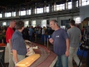 Az utolsó órában pedig egy kis csemegére is sor került: A nemrég átvett Nyalókámat - amelybe sikerült helyesen betenni a dekódert  - próbáltuk ki az asztalon egyik alkotójával - Gáborral (asztala a német modulokkal szemközt volt). A próbamenet sikeres és egyben tanulságos is volt: A normál 2,07-es síneken nem volt gond, viszont az alacsonyabb, TT-filigran sínekkel épített modulokon bizony kattogott és kicsit akadozott is.