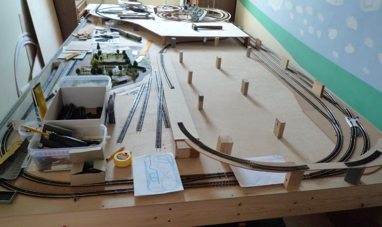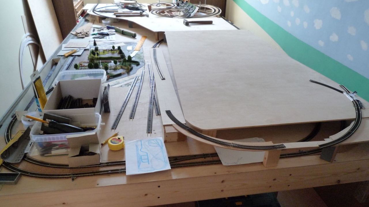 Lehet hogy hülye kérdés, és csak ügyetlenségem miatt teszem fel, de hogyan lehet flexibilis talpfarácsba behúzni a sínszálakat úgy, hogy a talpfák kinézzenek valahogy - ne girbe-gurba, hanem párhuzamos talpfaelrendeződéseket kapjak? A hétvégén fiammal próbálkoztunk, neki se sikerült, bár ő csak két és féléves. A terepasztal vázát viszont lelkesen csavarozta. Utóbbi egyébként fenyőléckeret + 50mm-es lépésálló XPS lap kombinációja - őt simán, horpadás, süllyedés, beszakadás nélkül elbírja - a 2db 950mmx1100mm-es modul összesen 8kg... |