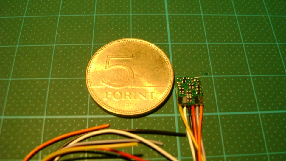 Ez a Tran DCX76zD. Jelenleg a világ legkisebb DCC mozdonydekódere. 6,9x6,1x1,7mm |