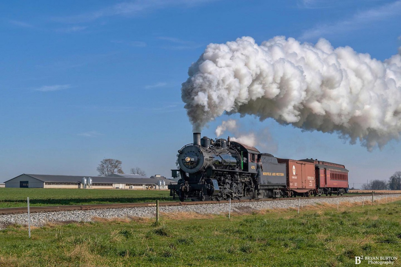 Norfolk and Western 475 highballs at “The Flats”.