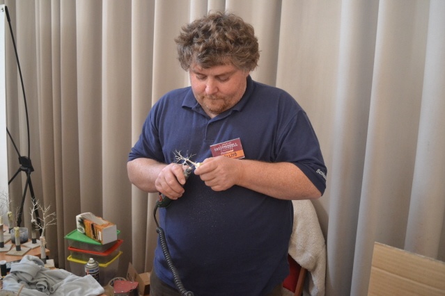 A fák/levelek ragasztásához jobb a szintelen lakk ( nekem a legjobban a matt vagy csillogos falakk vált be hajlitott fabutorra - ilyennek árulják). Ezt szépen lehet fujni ( nem köpköd) és nem annyira gyorsan szárad. ( Száradhatna még lassabban is, de akkor hidegben kell dolgozni 18 fok alatt  ). |