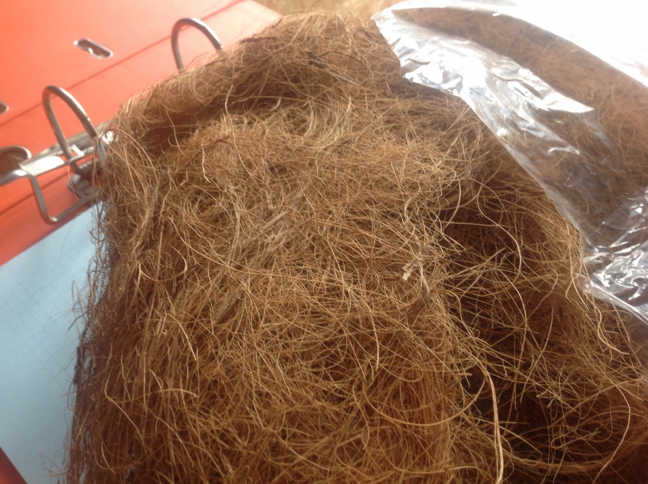 Ez egy régebbi szálas csomagolo anyag - alapbol barna szinü és kb. 0,3 -1 mm szálakbol áll. Régebben ebböl 2-10 cm vastag könnyü rugalmas lapokat is csináltak. Én sem tudom hol vettem, de van egy jo nagy zacskoval. Majd holnap lefényképezem. |