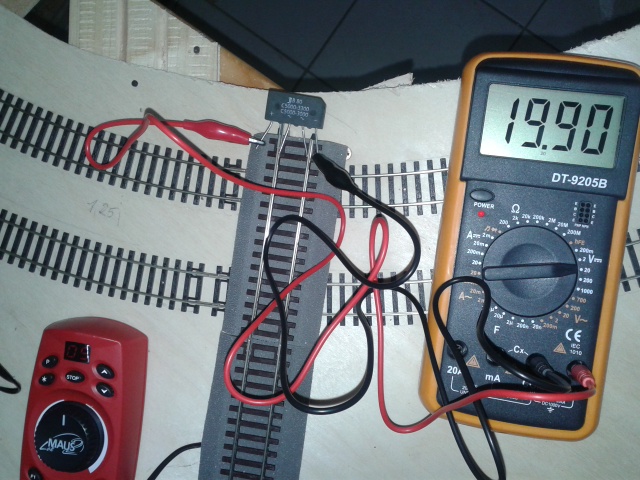 Ha kb meg szeretnéd tudni a sínfeszt adott helyen, akkor szükséged lesz egy diódahídra (Graetz-híd) kb 20 Ft. Ennek a váltóáramú részét rákötöd a sínre, a két egyenáramot (esetleg egy kondival pufferleve) pedig egyenárammérőn méred. Közben indíthatsz mozdonyt, és meg fogod látni, milyen szépen ingadozik a feszültség a sínben.