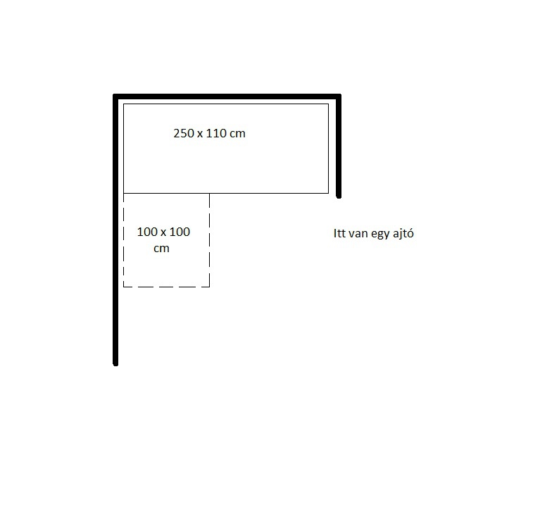 Úgy hozta a sors, hogy nyár folyamán költözünk és az új helyen lehetőségem lesz egy 250 x 110 cm helyen asztalt építeni. A két rövidebb és az egyik hosszabb oldal falnak támaszkodik. Lehet, hogy kibővítem L alakúra egy 100 x 100 cm-es résszel az egyik fal mentén. (mellékelt vázlat alapján)
