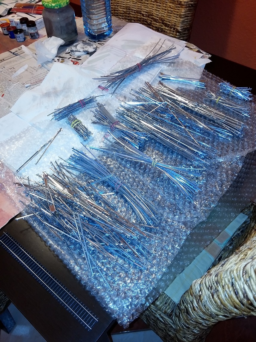 Az általad említett beton megjelenés problémára gondoltam én is és nem csak a keresztmetszete miatt, hanem a fa erezete miatt is. De nem lesz ezzel gond, mert szándékosan az asztal hátsó felére kerülnek ezek a sínek, ami olyan 1,5-1,8m van tőlem. Gondoltam itt egy modern 2 vágányos elővárosi, hosszú egyenes szakaszt modelleznék vele vörösesbarna sínkaviccsal. |