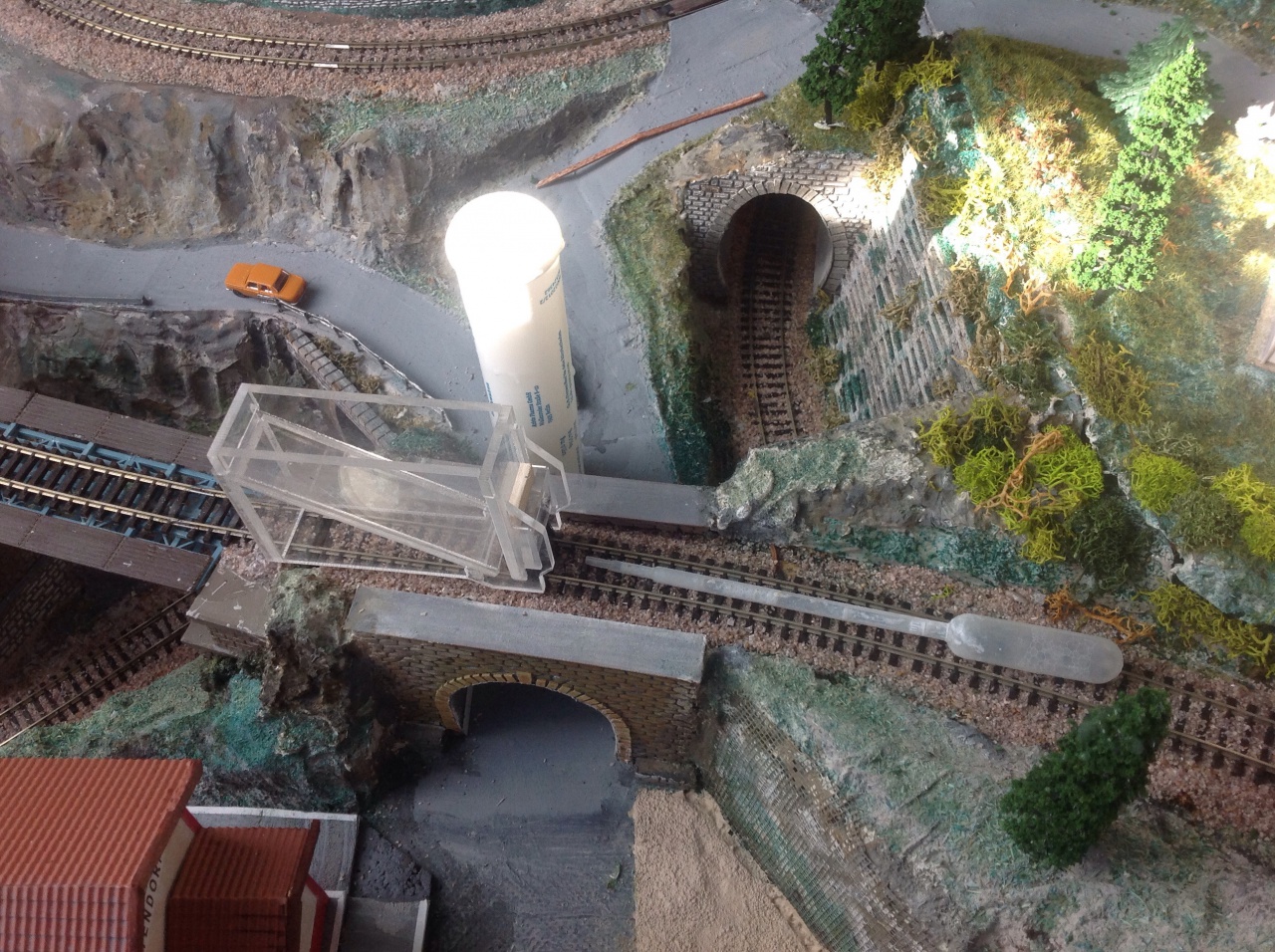 Igen nem a levegőben vezet. Ott is alá van építve, de a programom nem tudja. Egyenlőre a szakaszolást kellene elsajátítanom, hogy a váltók és később a jelzők működésébe ne okozzon gondot. Ne keljen szétszednem.