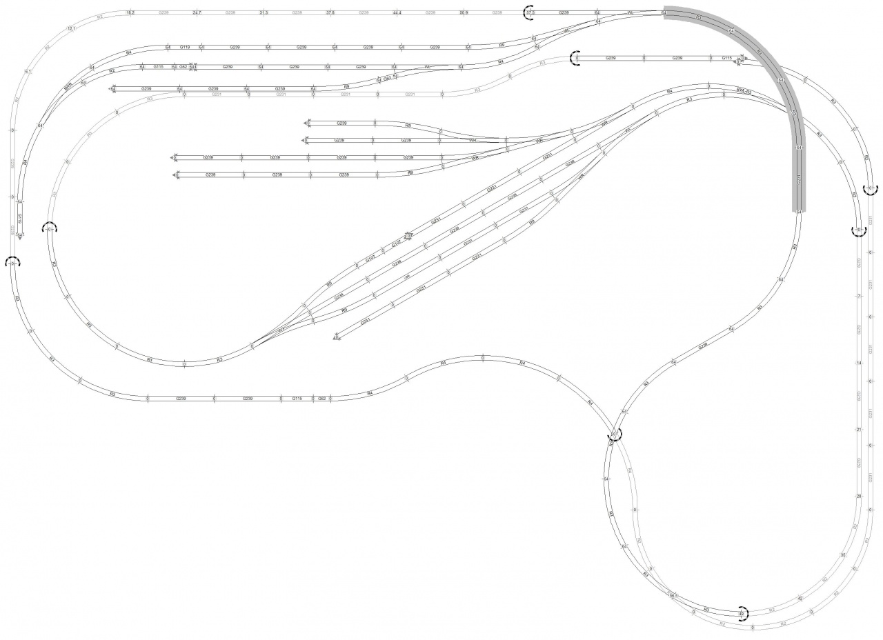 Amit még el kell döntened, milyen hosszú vonatokat akarsz közlekedtetni, bár a hely megadja a max 3-4 kocsis szerelvényeket. Erre kell méretezni a tároló vágányokat , állomási fogadó vágányokat. A pálya ívekre is figyelj, 420mm-nél kisebb sugarú ívek messziről elkerülendőek, azon már szerintem a forgóvázas kocsik egy része könnyen kisiklik.( ebből kiindulva az alagútba sem tennék kicsi ívet.) |