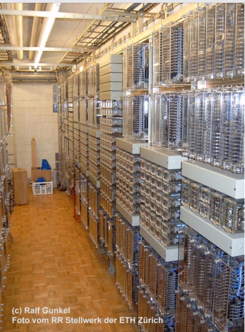 Az utolso képen meg a sokkal egyszerübb reléállványok, ahol un biztonsági vasuti kisrelék voltak (kevés kontaktussal), kezelö pulthoz vezetö jelekkel, amik azon nagy relék alapján jelezték ki a vágányutat, és választották a lehetséges vágányutakat, de közvetlenül, nem hozhattak létre engedélyezö parancsot.