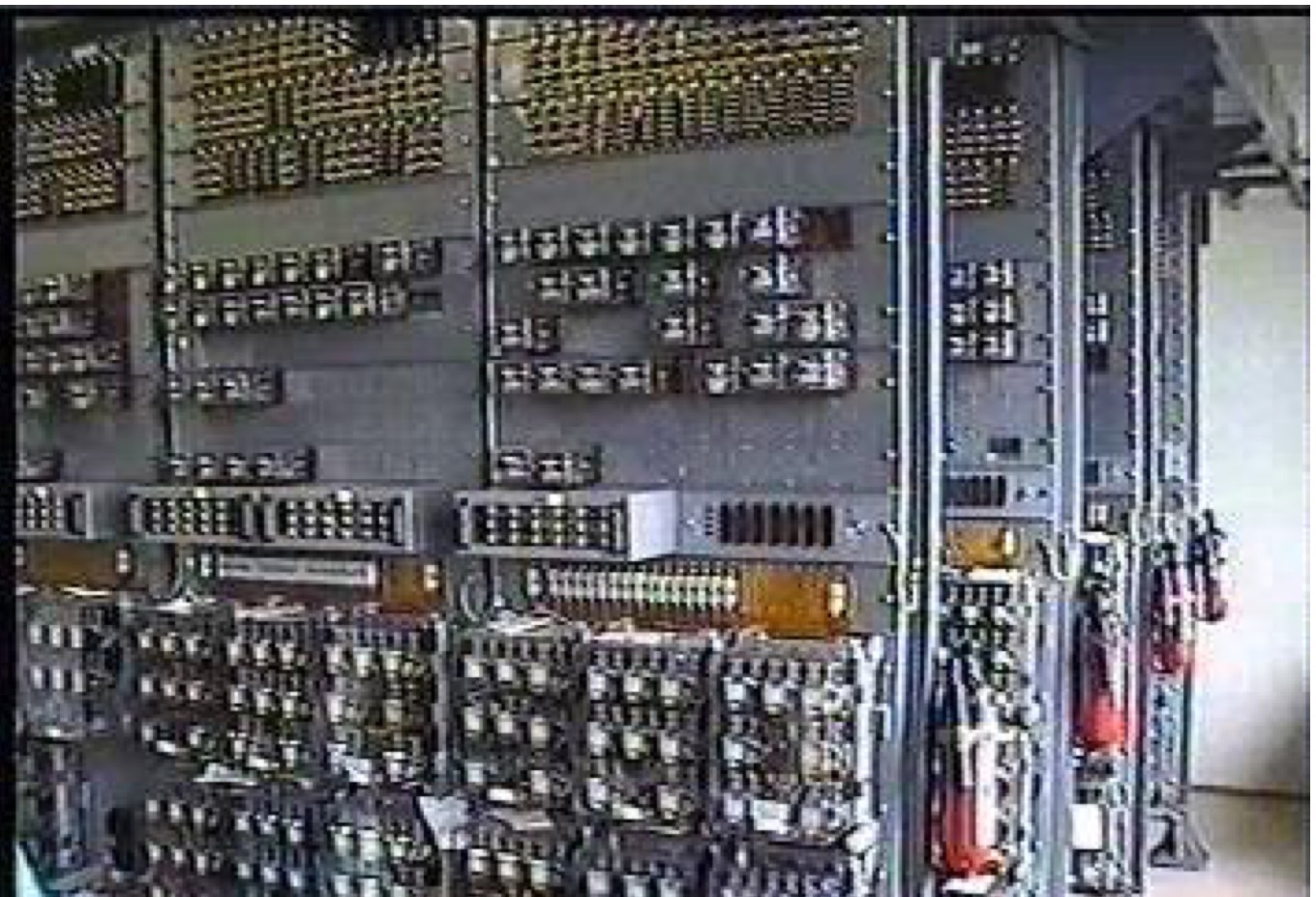 Az egy kicsit tulzás, hogy háttal állt a reléállványnak, mert minden nagyobb pulthoz nem egy, hanem egy tucat reléállvány kell ( rendszerint egy egész helység és rendszerint egy más szinten van). |