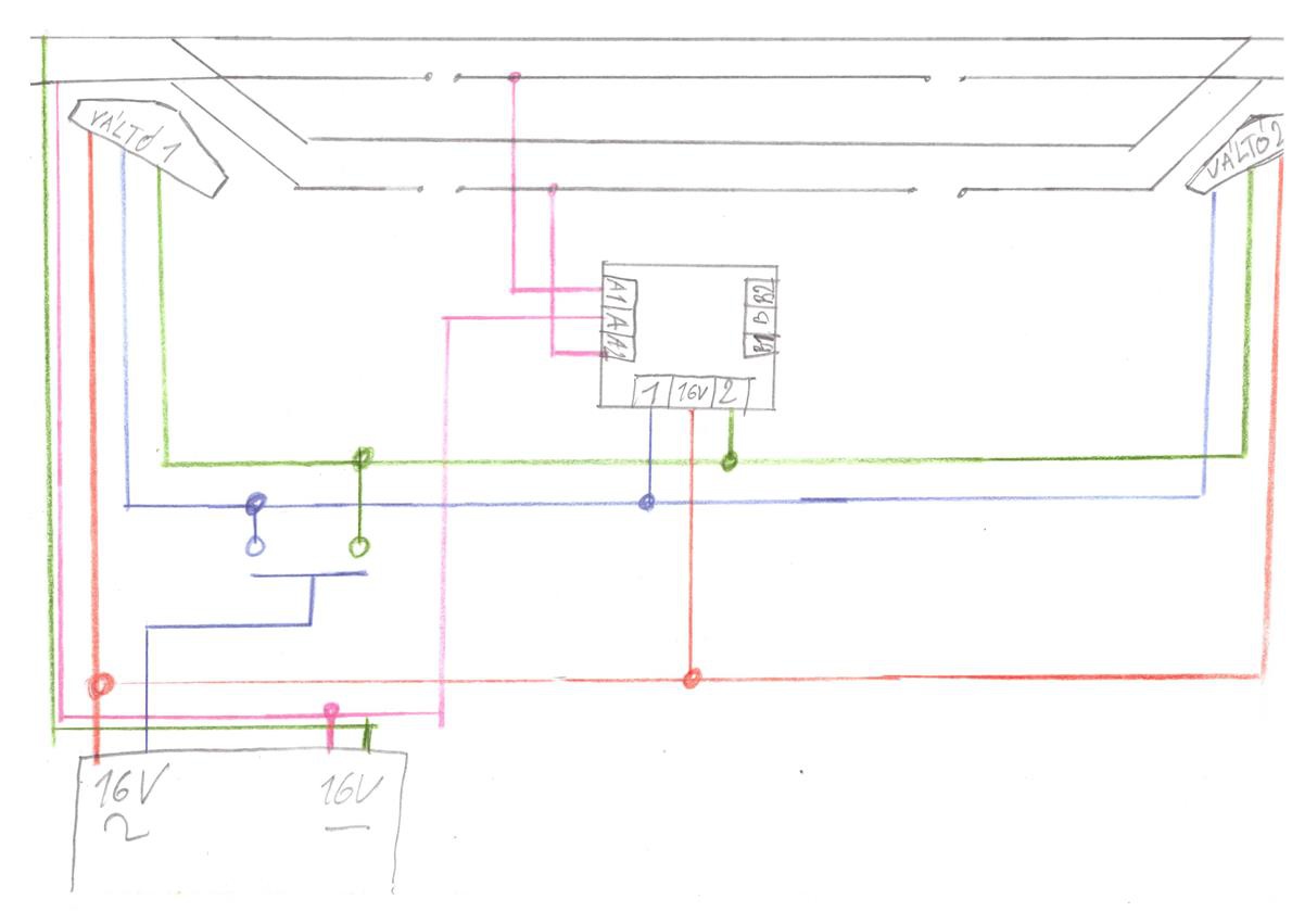 De ez sem lesz tul jo, mert továbbra is ott marad a 16-12V különbség a relé meg a válto közös pontjai között ami lehet, hogy elég a bistabil relé berregtetésére.