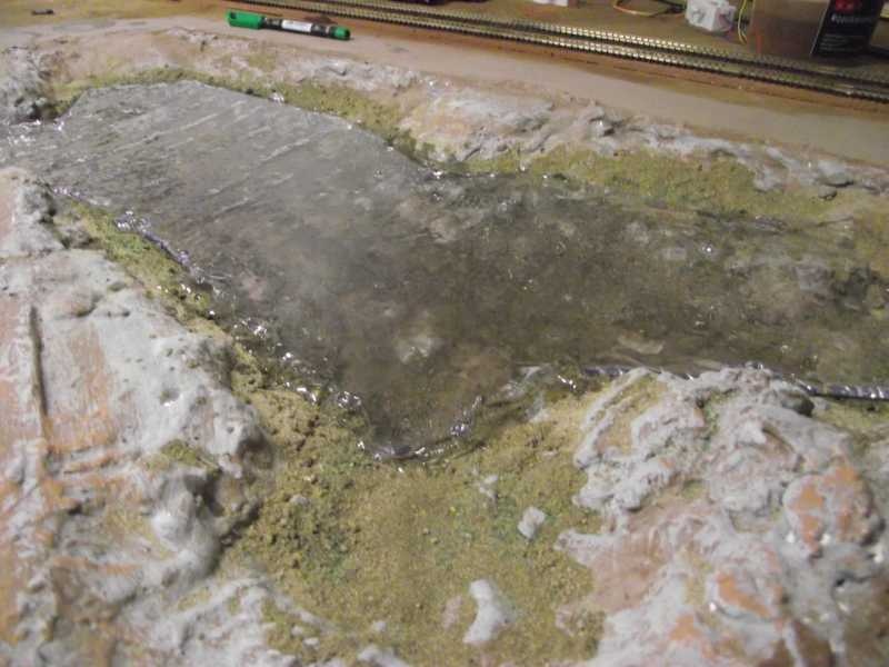 Én vizet végül a Woodland Scenic Water rendszerével csináltam és hibátlan, viszont 24 óra a kötési idő, és vékony rétegekben kell felhordani.