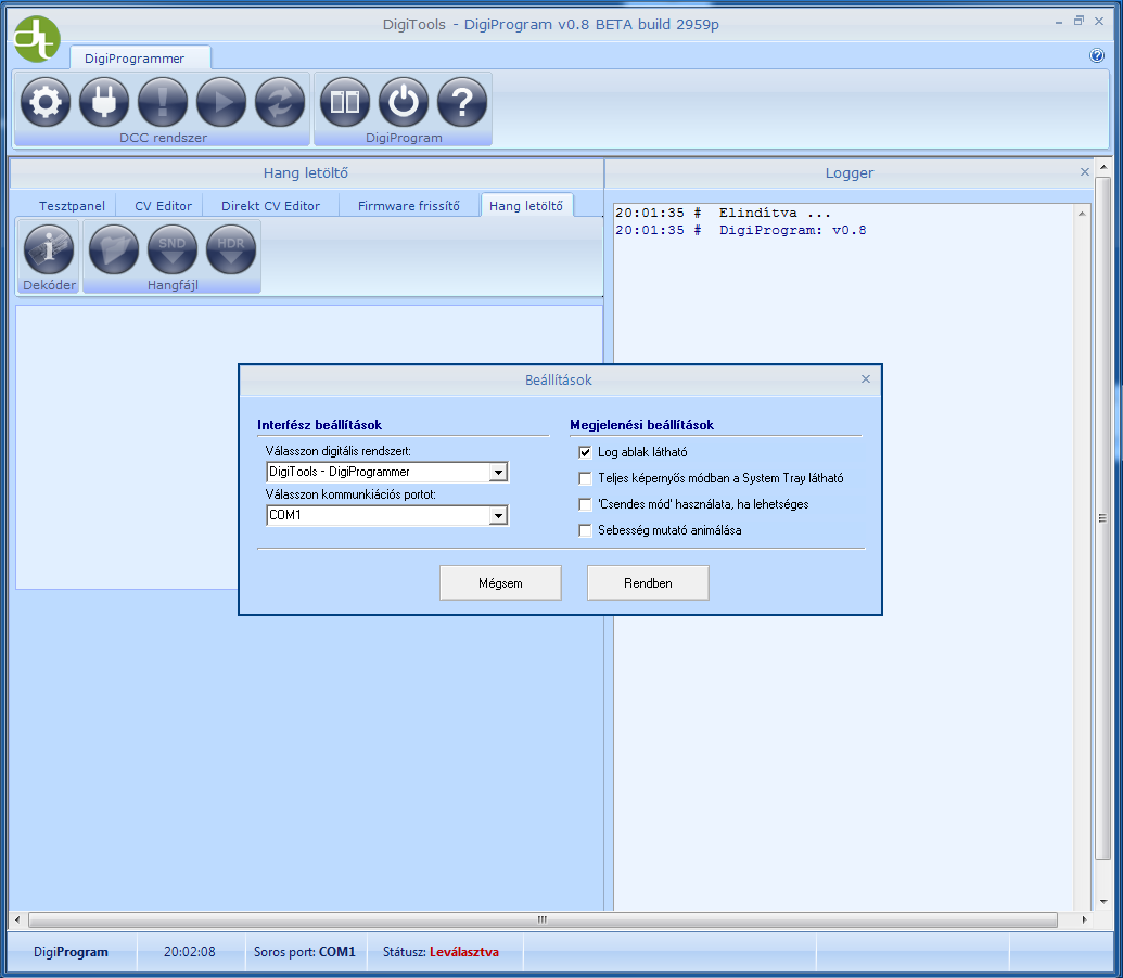 Feljön a LenzDigitalPlus/LI100 kiválasztási lehetőség, csatlakozik egy rövid ideig, aztán "ledobja" egy notanswer com5 válasszal.