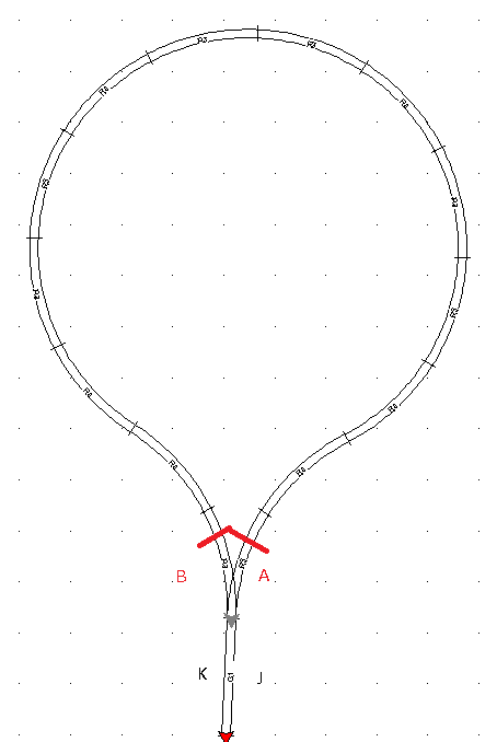 Ha eddig jó akkor, veszek egy relét, ami a váltó állásától függően a váltó előtti J és K sínjelet a hurokba a váltó állása szerinti polaritással teszi be a belső és a külső sínre . Így alap esetben nem rövidzárlat fogja a polaritás váltást előidézni, hanem a váltó állítás. (ami ha automatikus akkor is végre hajtja a feladatát.) Mondjuk a váltóhoz rossz irányba érkező vonatra nem megoldás, de ha sima egyirányú a hurok akkor a váltó felszabadulásakor már át is állítható akár automatán is, így a kilépő vonat már jó állású váltót (ez miatt jó polaritást is) kap. Ha meg a rendszer szerint visszafordulhat, jöhetnek a bonyolultabb modulok, vagy a vágányút beállításos közlekedtetés, mint az élő vasúton.