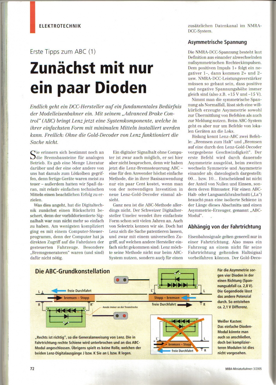 1: a Lenz ABC fékezés az alapban menetirány függő, konkrétan, hogy a MIBA beszkennelt cikkét idézzem, a "jobb az jobb". Vagyis, ha felénk eső sínszálat szakítjuk meg, és a mozdony jobbra megy, akkor fékez, ha aktív az ABC modul.