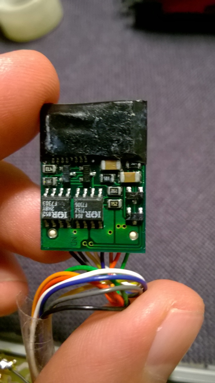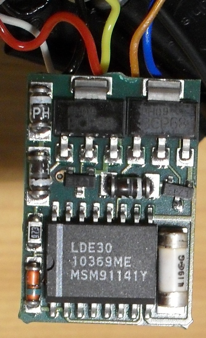 Van egy Roco startszettből származó BR 218-as mozdonyom. Ebben integrálva van a dekóder. Gyárilag 1-1 LED van rajta (fehér kockák), az világít, amerre megy, a 4 fekete vezeték a sínből szedi a tápot. Látom, hogy van egy csomó forr.pont a lapkán, de nem tudom, lehet-e rákötni még valamit és hová mit. Erre ötlet/tapasztalat valakinek esetleg? Mondjuk jó lenne piros ledeket bekötni, a fényvezető megvan hozzá, csak LED és bekötés nincs.